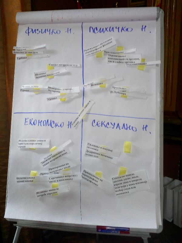 U grupi su bili predstavnici/ce centra za socijalni rad, suda, zdravstveni i prosvetni radnici. Ovakva zastupljenost dala je grupi potrebnu različitost što se naročito videlo u grupnom radu i u diskusijama.
